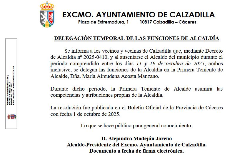 DELEGACIÓN TEMPORAL DE LAS FUNCIONES DE ALCALDÍA
