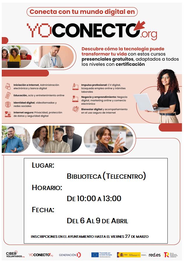 YOCONECTO.org 11 marzo 2026 Anímate #YOCONECTO.org Del 6 al 9 de Abril 10:00h -13:00h Inscripciones en el Ayuntamiento