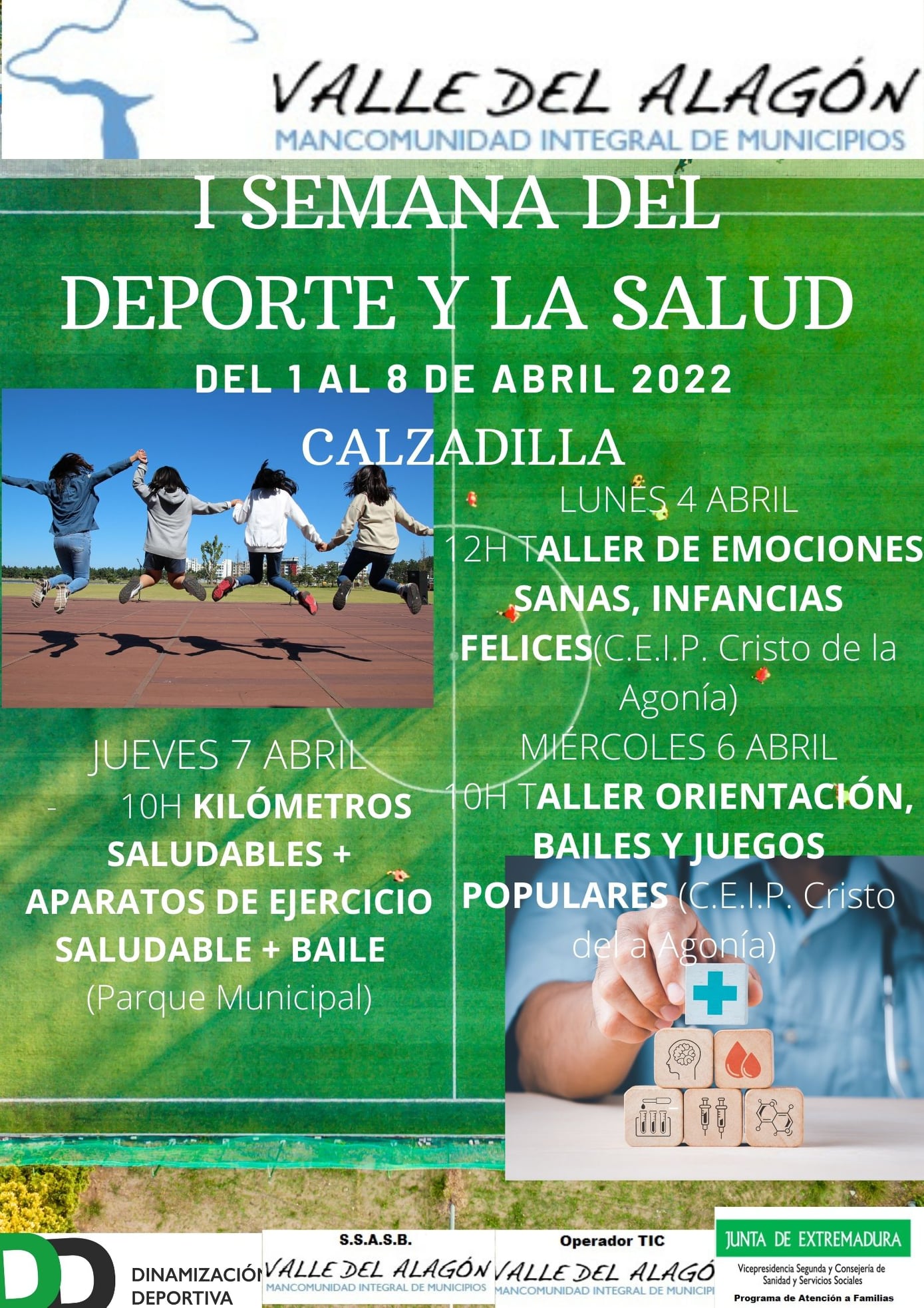I SEMANA DEL DEPORTE Y LA SALUD EN LA MANCOMUNIDAD VALLE DEL ALAGÓN. 01 abril 2022 PROGRAMACIÓN GENERAL Y ESPECÍFICA POR MUNICIPIOS DE LA I SEMANA DEL DEPORTE Y LA SALUD EN LA MANCOMUNIDAD INCRIPCIONES EN EL Ayuntamiento de Calzadilla.