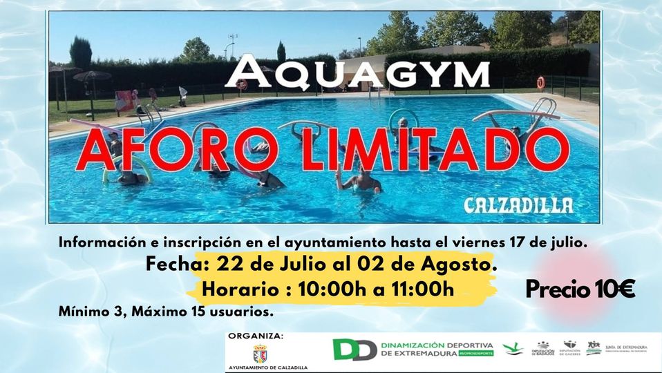 Abierto plazo de inscripción AQUAGYM 06 julio 2024 PLAZAS LIMITADAS( según orden de inscripción bajo pago de la tasa).