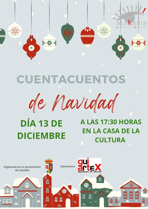 Cuentacuentos de Navidad. 13 diciembre 2024 VIERNES 13 DICIEMBRE HORA 17:30H CASA DE CULTURA - CALZADILLA